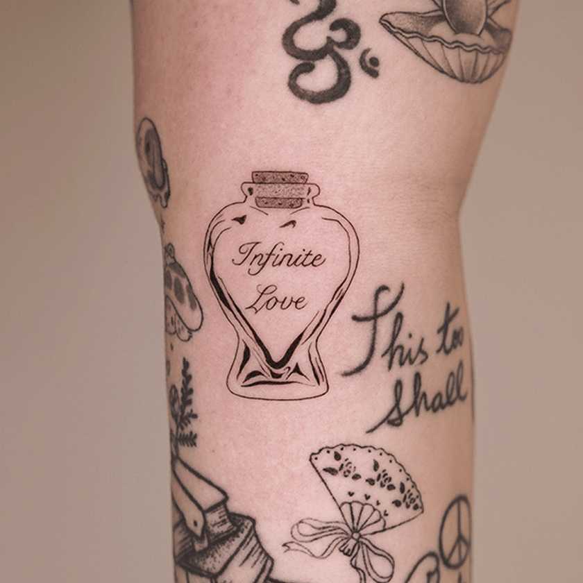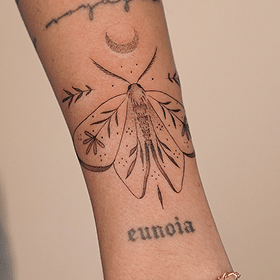 Growing up surrounded by tattooing and watching her mother work at Iris, Azul was inspired early on to develop her own artistic path. She gravitated toward fine-line and blackwork illustrative tattoos, honing a skillful and thoughtful approach to her work. One area she’s especially excited to explore further in her career is botanical illustration—collecting small pieces of beauty from around the world and translating them into designs that connect her and her clients with nature.